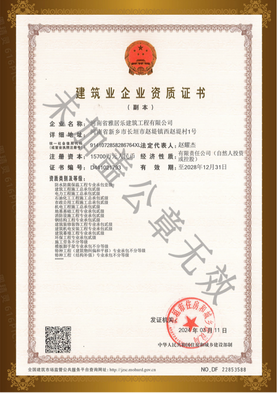 专注房屋建筑、市政公用、电力、石油化工、环保、土石方、防水防腐保温、钢结构、建筑装修装饰、城市园林绿化、承装(修、试)电力施工、压力管道安装
